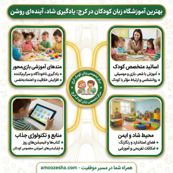 آموزشگاه زبان انگلیسی آکادمی است که با بهره مندی از متدهای روز دنیا و بهترین روش های یادگیری به آموزش زبان دوم به فرزندان عزیز شما می پردازد. در این مقاله ما به معرفی بهترین آموزشگاه زبان کودکان در کرج پرداختیم. امیدواریم مطالب ارائه شده مفید واقع شوند. در بخش دیدگاه می توانید سوالات و نظرات خود را برای ما کامنت کنید.